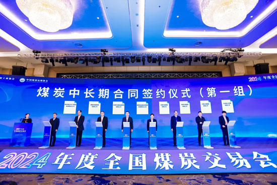 在开幕式上,中国煤炭工业协会、中国煤炭运销协会联合发出了做好今冬明春保暖保供与煤炭产运需衔接工作的倡议书;唐山市人民政府与中国煤炭运销协会签订了战略合作框架协议;32家大型煤炭供需企业现场签订了2024年度煤炭中长期合同,合同总量4.0亿吨左右;举办了企业家论坛,国家能源集团、晋能控股集团、陕西煤业化工集团、开滦集团分享了企业贯彻新发展理念,深化改革创新,加快推动绿色低碳转型和高质量发展的好思路、好经验、好做法。